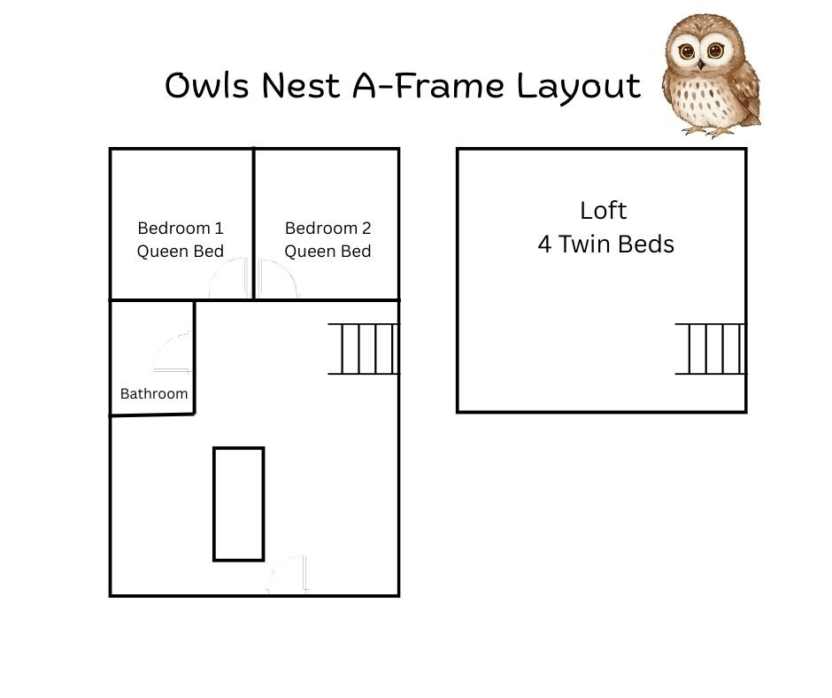 S’mores Cabin is a quaint, quiet cabin. The cabin is equipped with a queen timber frame bed, an electric fireplace, a countertop with stools, electric and AC. There are great views from the porch. A fire pit, picnic table, grill and located close to our bath house.